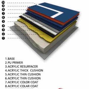 Es uno de los sistemas de pisos acrílicos a base de agua diseñados para canchas de tenis, baloncesto y voleibol. Sistema; Consiste en capas de pintura de imprimación, resurfacer acrílico y capa superior acrílica.